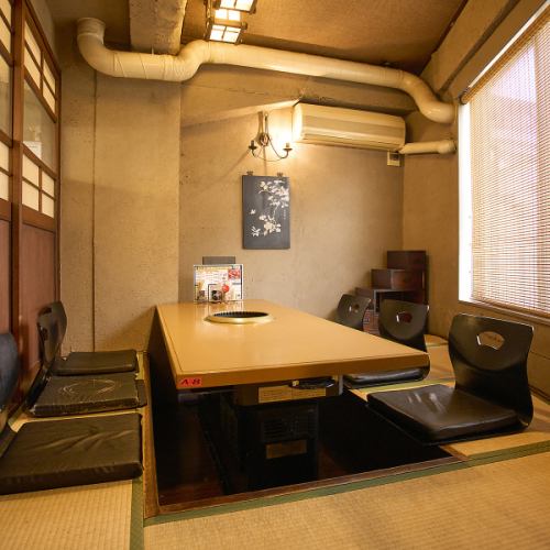 掘りごたつ席の個室はゆったり落ち着きます。6名様用。(4~7名様完全個室。2~4名様半個室)
